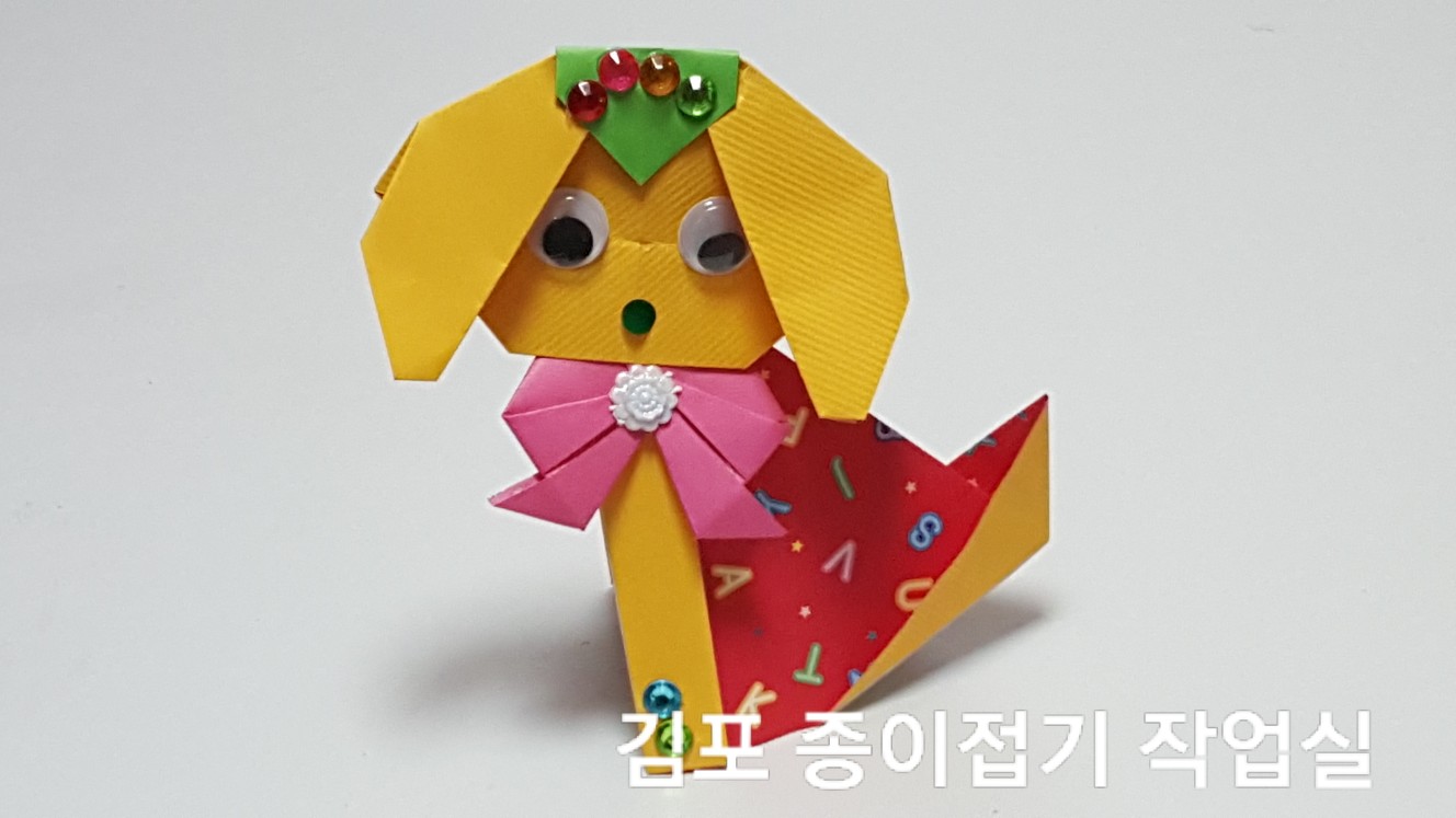 튤립도 접고 강아지도 접고 하는데 강아지를 좀 더 예쁘고 재미있게 만들어 보는 것이지요.