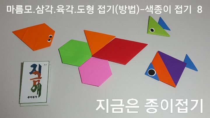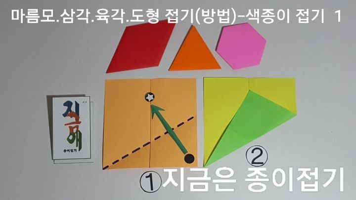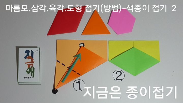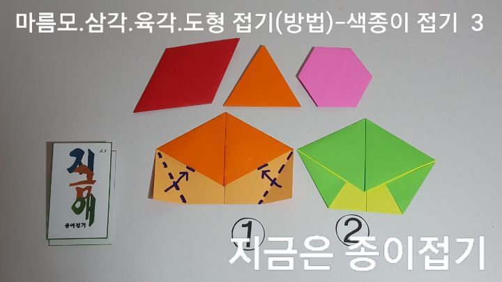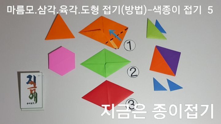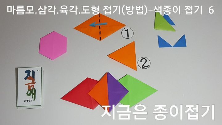 종이접기로 삼각 사각 육각 모양의 도형을 만들어 봅니다.