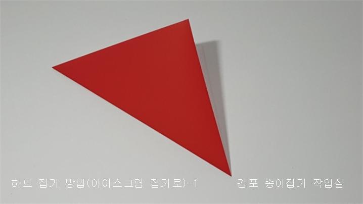 하트 접기 방법(아이스크림 접기로)-1 세모로 접었다가 펼치세요.