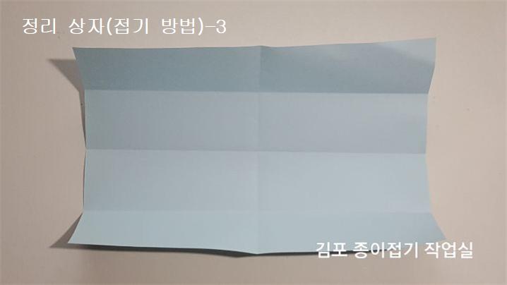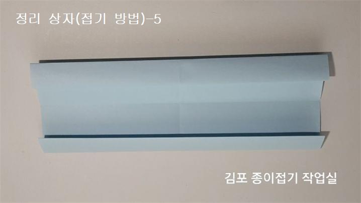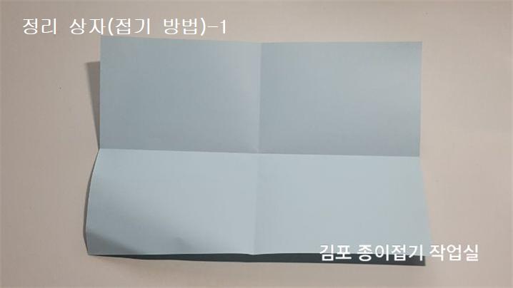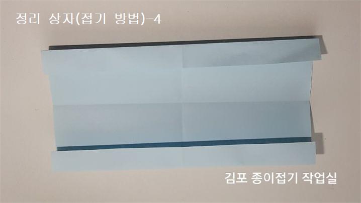 a4 용지로 정리 상자 접기 방법 2) 중심선에 맞추어 길게 네모로 마주 접어주세요.
