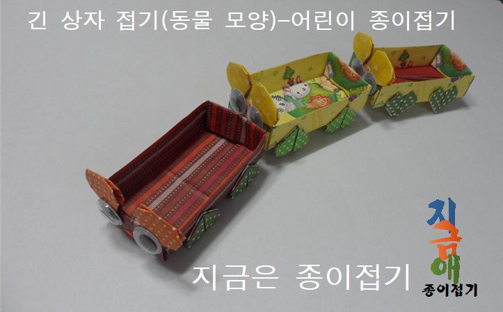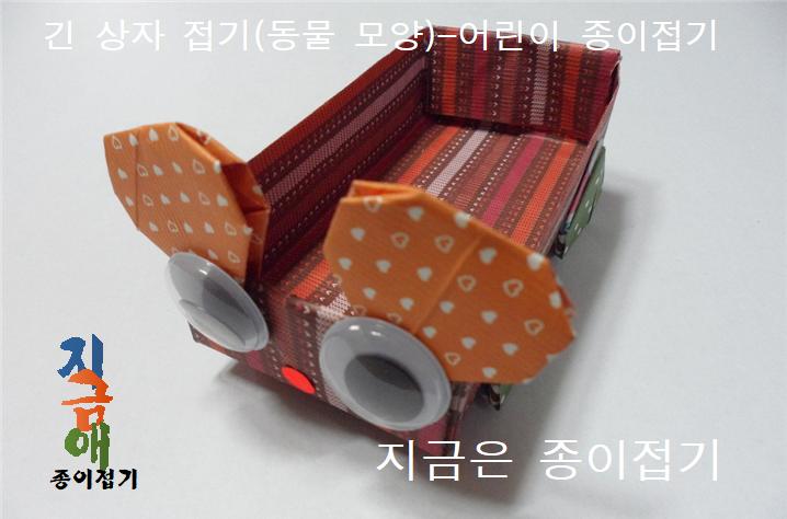 지금은 긴 상자를 접어 놓고 하트 접기를 더하여 동물 모양의 상자로 만들어 본 것입니다.