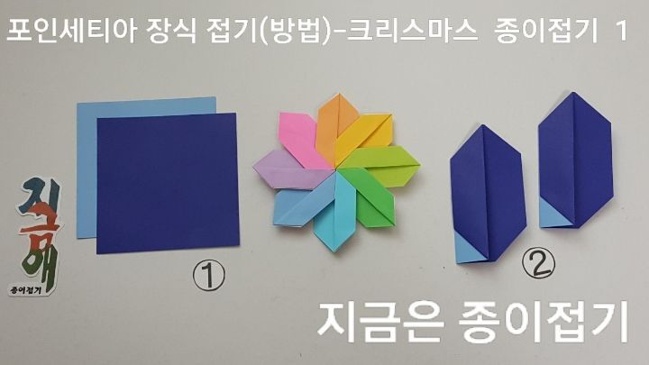 포인세티아 접기 방법 1) ①진한 청색이 보이도록 접어 ②의 모양이 되도록 접을 거예요.