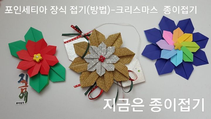 어린이와 어르신들이 쉽게 따라 하며 크리스마스 트리나 리스 접기에 붙여 꾸밀 수 있도록 쉬운 종이접기 방법으로 접어 보는 포인세티아 접기 방법입니다.