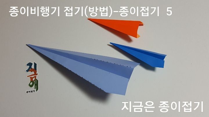 종이비행기 만들기 5) 파란색 색종이 비행기는 a4용지로 접은 것처럼 직사각으로 접은 모양이고요. 주황색 비행기는 정사각형의 색종이로 접은 모양입니다.