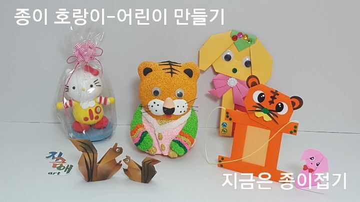 딱히 만들기 재료가 준비되지 않을 경우 색종이로 호랑이 접기를 하여도 한 귀염 합니다.