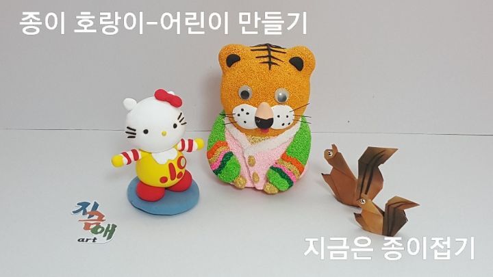 종이접기 호랑이와 클레이로 만든 호랑이의 포인트는 호랑이 얼굴에 있지요.