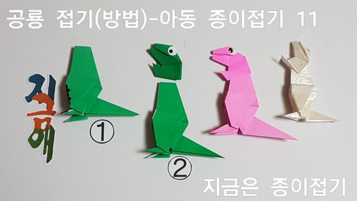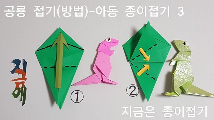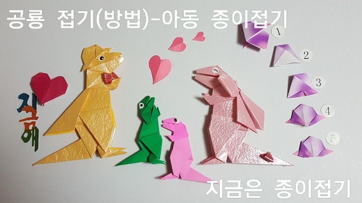 한국종이접기 협회의 종이접기 자격증 과정에서도 접어 볼 수 있는 공룡 접기입니다. 종이접기 초급 과정은 아동 종이조형 활동에 도움이 되는 다수의 접기들이 있으며 모양의 변화와 응용의 생각을 더하여 주면 재미있는 모양과 이야기가 있는 만들기가 됩니다.