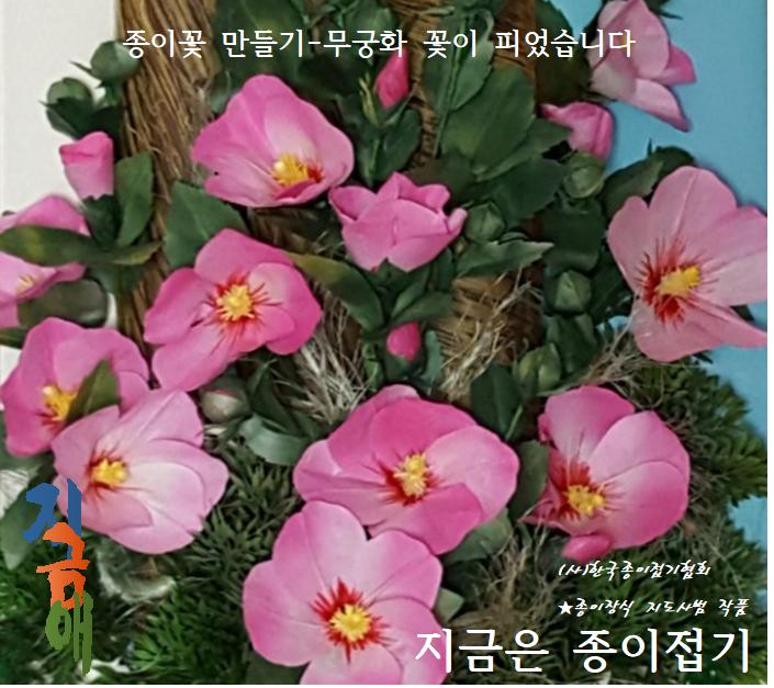 한지로 만든 무궁화 꽃으로 (사)한국종이접기협회의 종이장식 분야에서 지도사범 과정에서 만드는 작품입니다. 한지로 만드는 꽃은 종이접기 꽃 만들기 보다 섬세함으로 아름답게 표현할 수 있습니다.