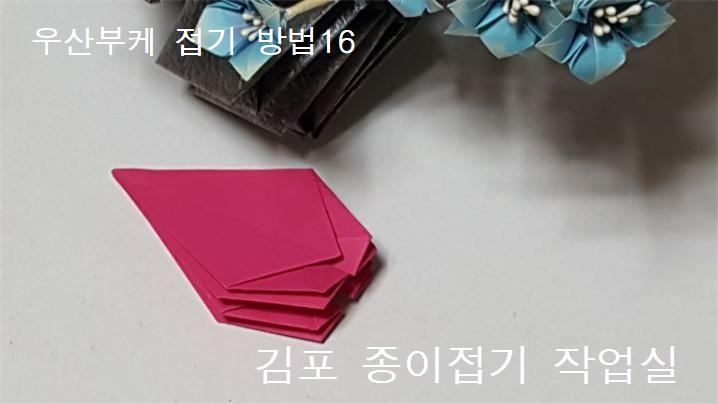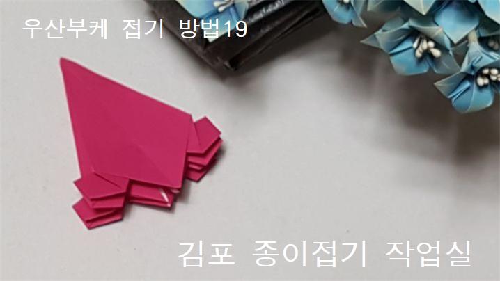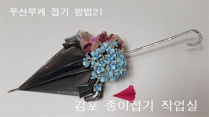 종이접기 우산 장식 만들기 21) 같은 모양이 되었는지 확인해요. 종이접기 꽃도 접어 꾸밈 하고요..