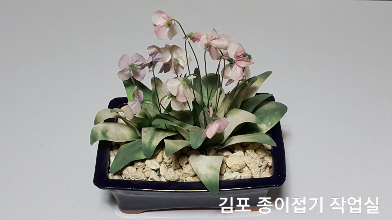 이 제비꽃은 염색된 한지를 사용하여 만들었어요.