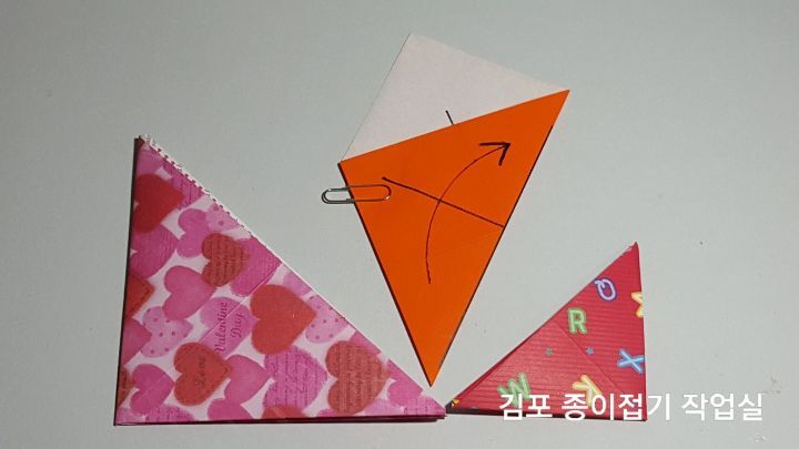 책갈피로도 사용하는 삼각형 모양의 폴더 접기입니다.