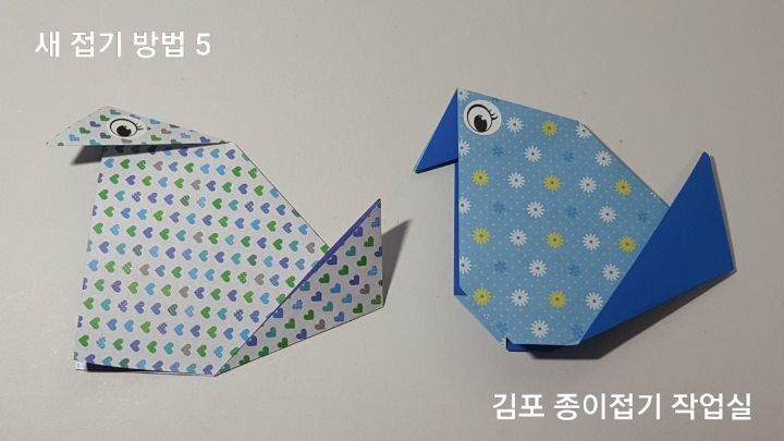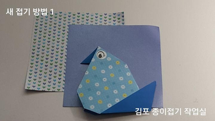색종이로 새를 접어요. 손이 조그만 어린이와 함께 접거나종이접기 구성작품을 할 때 아주아주 쪼그만 새를 접어야 할 때 접으면 딱~ 알맞은 새 접기 방법입니다.