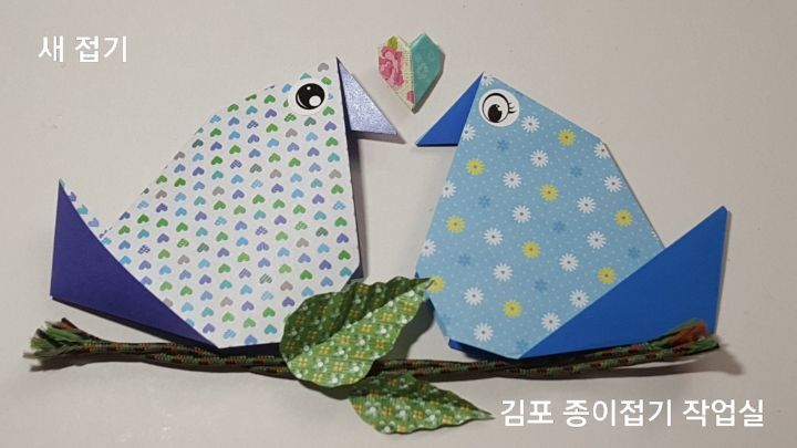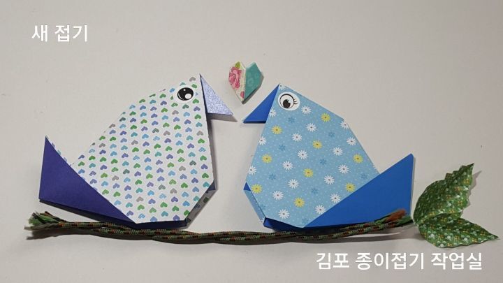 종이접기 새가 완성되었어요.