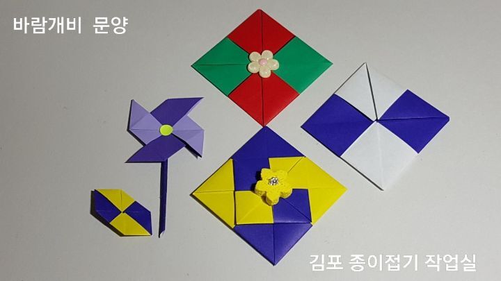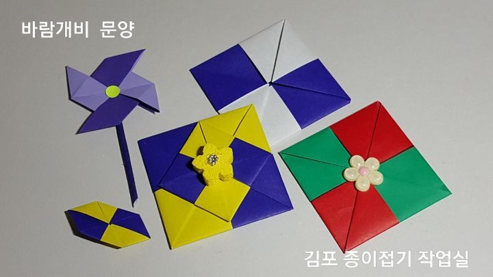 색종이 접기로 간단하게 바람개비를 접어요. 바람개비 종이접기지만