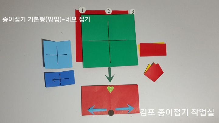 ①네모 접기(사각접기) 방법 색종이를 네모 접기를 할 때 반을 접은 후에 보면