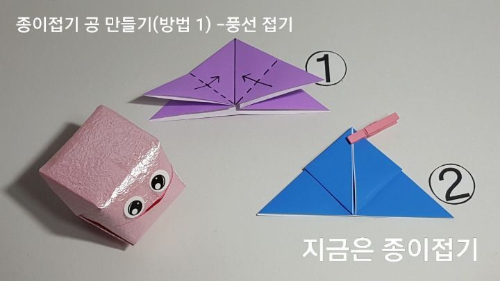 지금은 종이접기로 공 접기와 풍선 접기의 방법을 알아보는 즐거운 시간입니다.