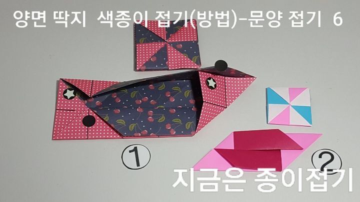 앞과 뒤의 모양이 같은 양면 딱지 문양 접기입니다.